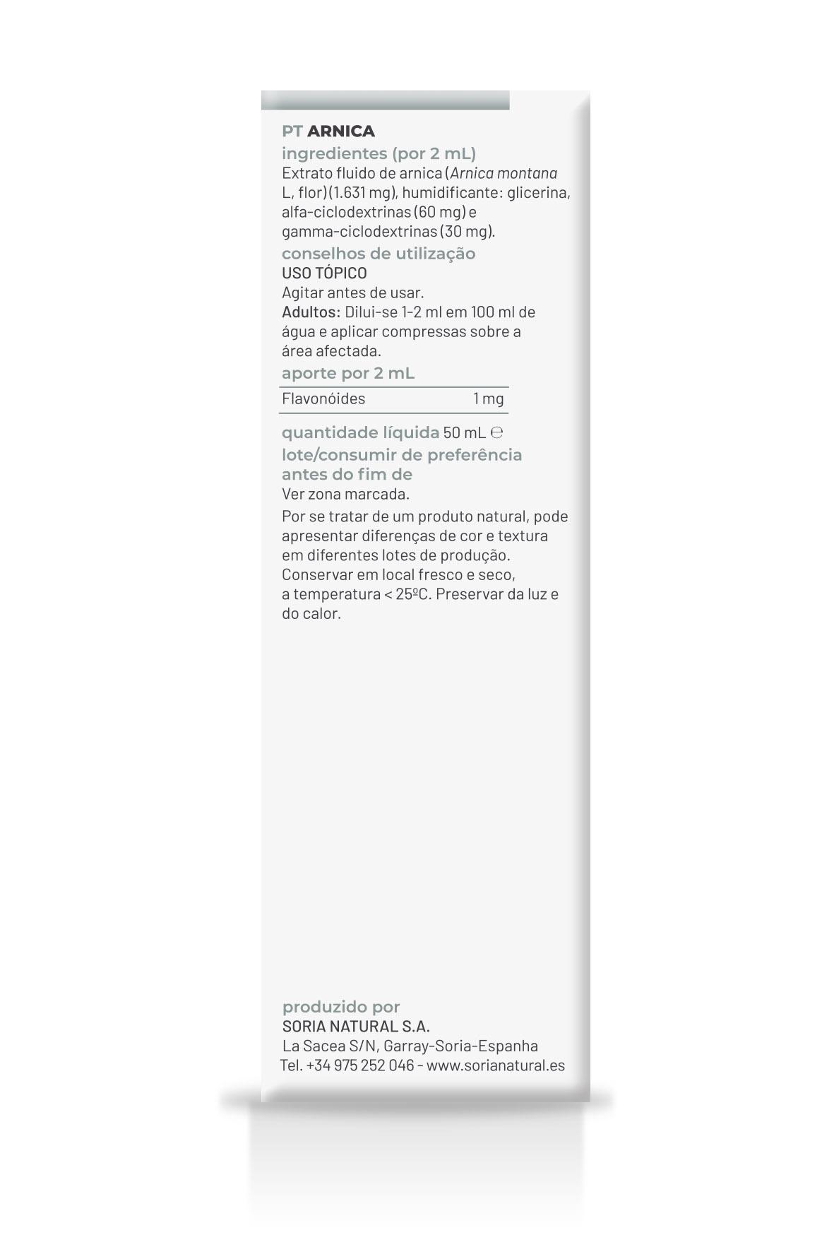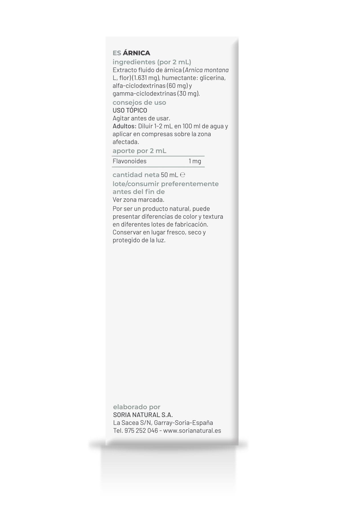 Por 2 ml: Extracto fluido de árnica (Arnica montana L, flor) (1631 mg), humectante: glicerina, alfa-ciclodextrinas (60 mg) y gamma-ciclodextrinas (30 mg).