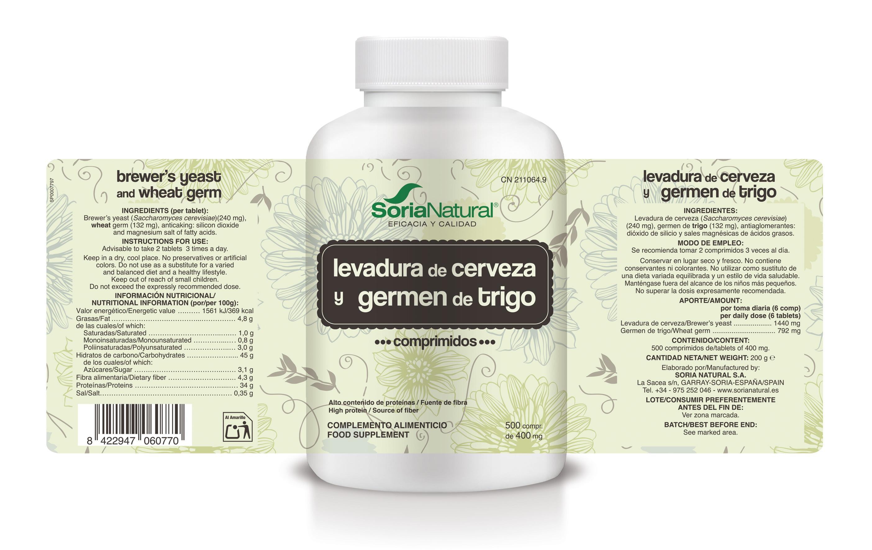 Levedura de cerveja (Saccharomyces cervisiae) (240 mg), gérmen de trigo (132 mg), antiaglomerantes: dióxido de silício e sais magnésicos de ácidos gordos.